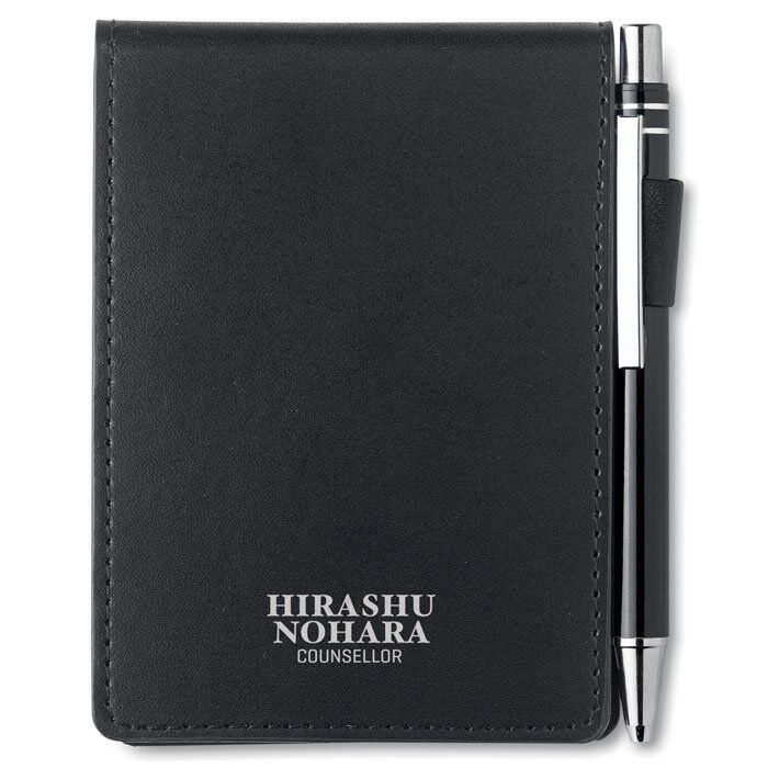 A7 notebook with 60 pages (70 grams) in PU pouch with pen. Blue ink.