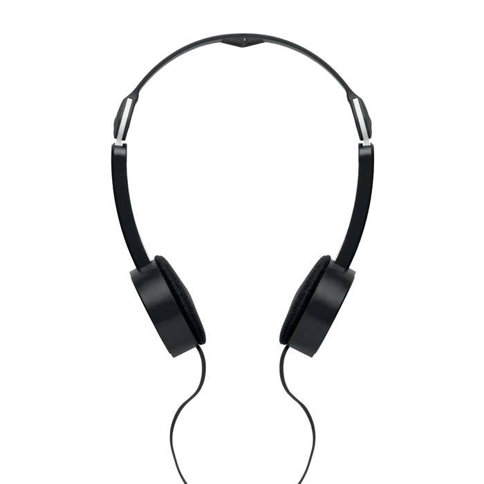 Foldable headphones in ABS material with a stylish matt finish, supplied in storage pouch.