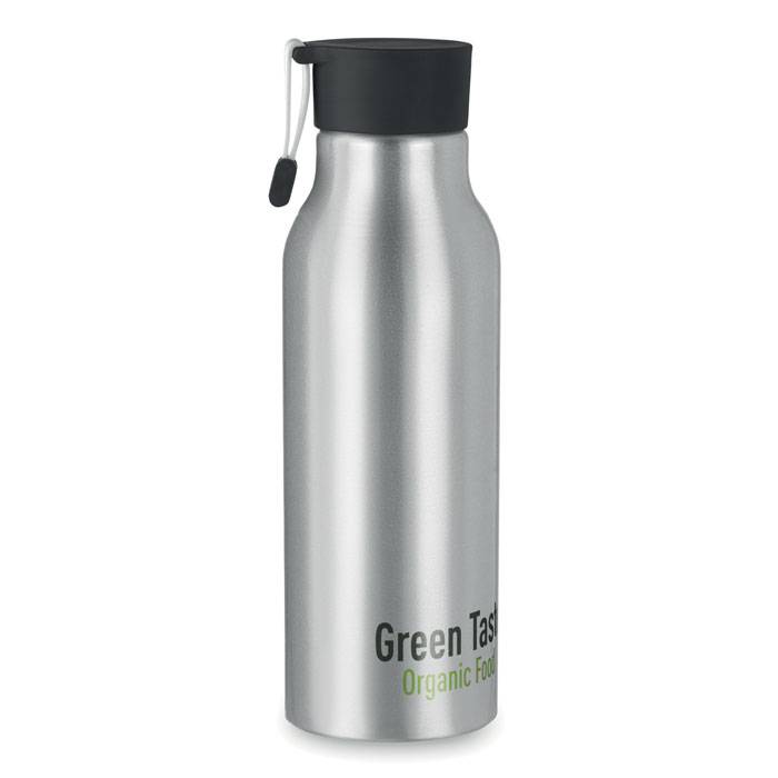 Aluminium drinking bottle 500 ml single wall with silicone strap