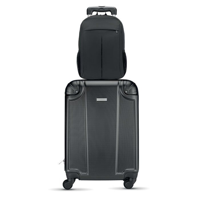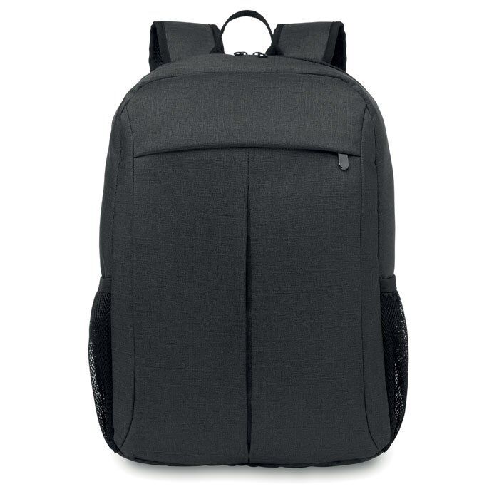 15 Inch computer backpack in 360D 2 tone polyester. Includes one internal 15 inch laptop compartment and one main front part with zipper pocket. Padded back and shoulder straps. Additional pocket for Tablet compartment. Trolley holder back side.