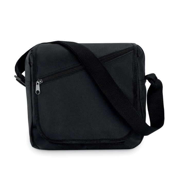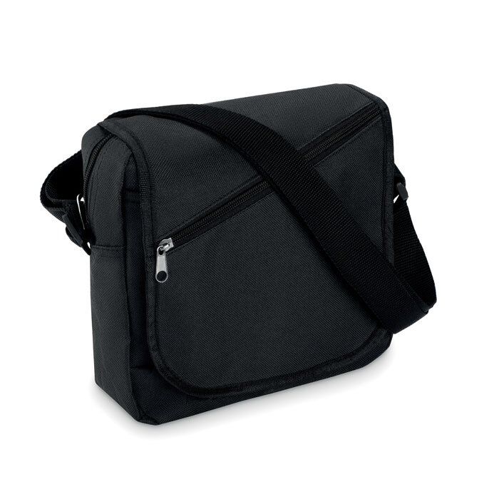 City bag in 600D polyester with zippered main compartment, front pocket, flap with zippered front pocket. Adjustable shoulder strap.