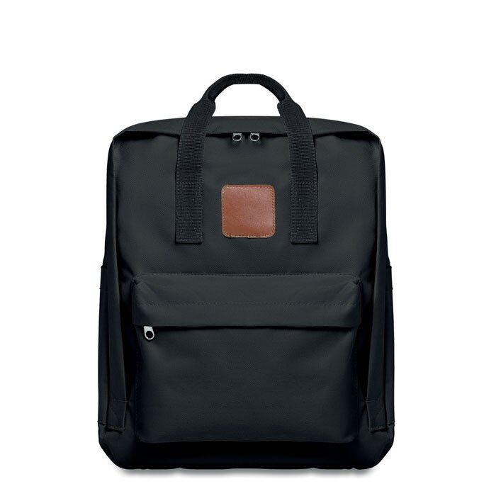 Backpack in 600D ployester with main compartment, padded back, with front and side pocket