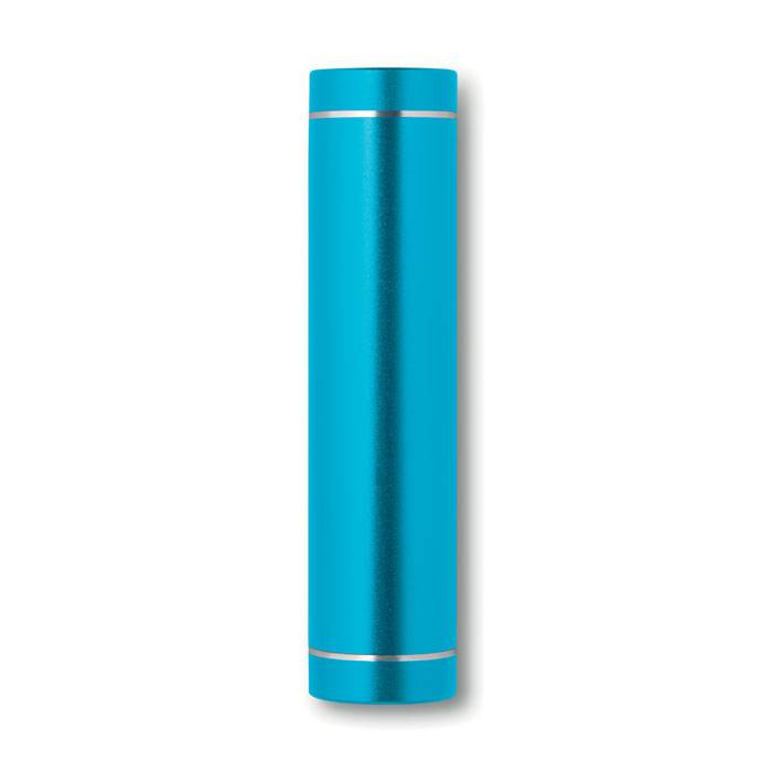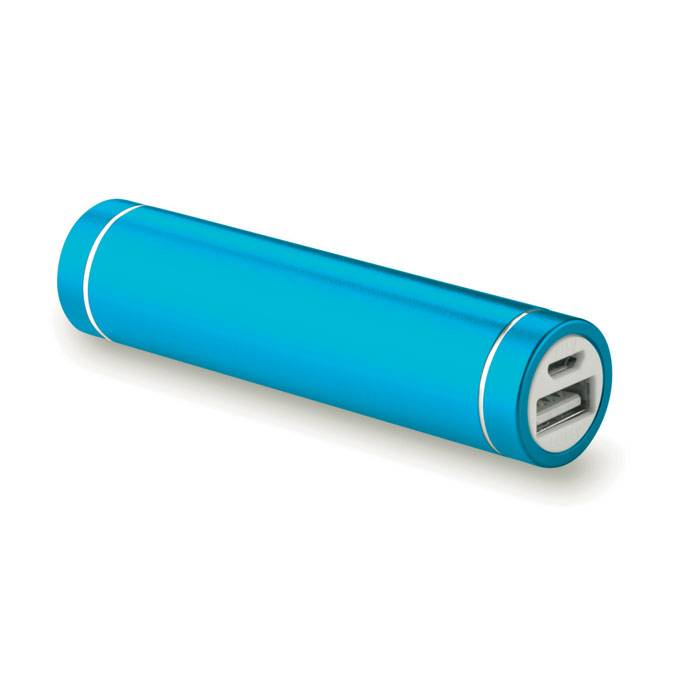 Cylinder power bank 2200 mAh in aluminium. Capacity for smartphone use, output current DC5V/1A. Includes indicating light and USB cable with micro usb plug