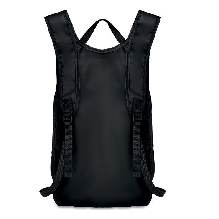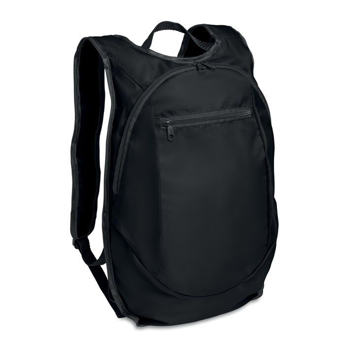 Sports backpack in 210D polyester with one main compartment and front pocket.