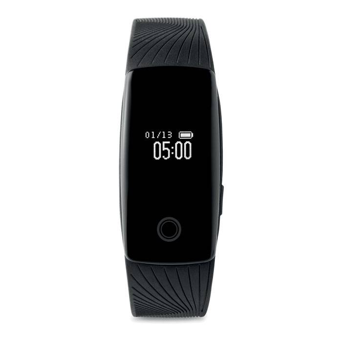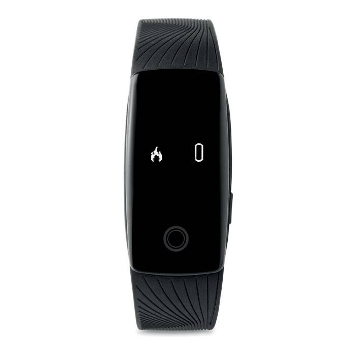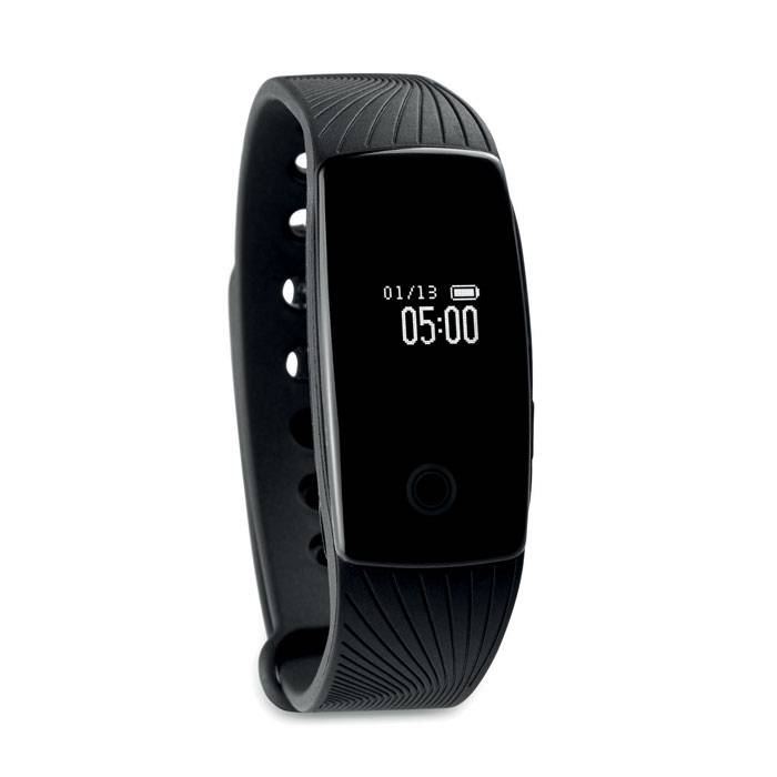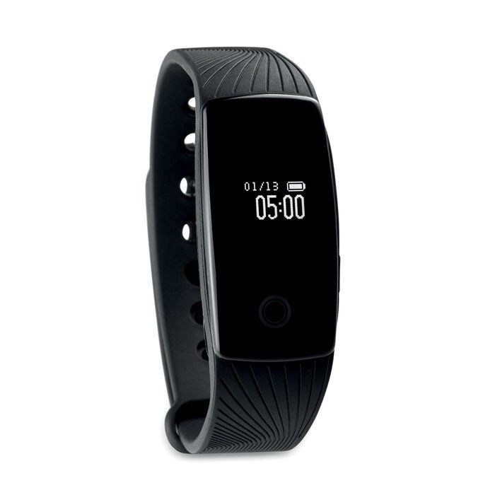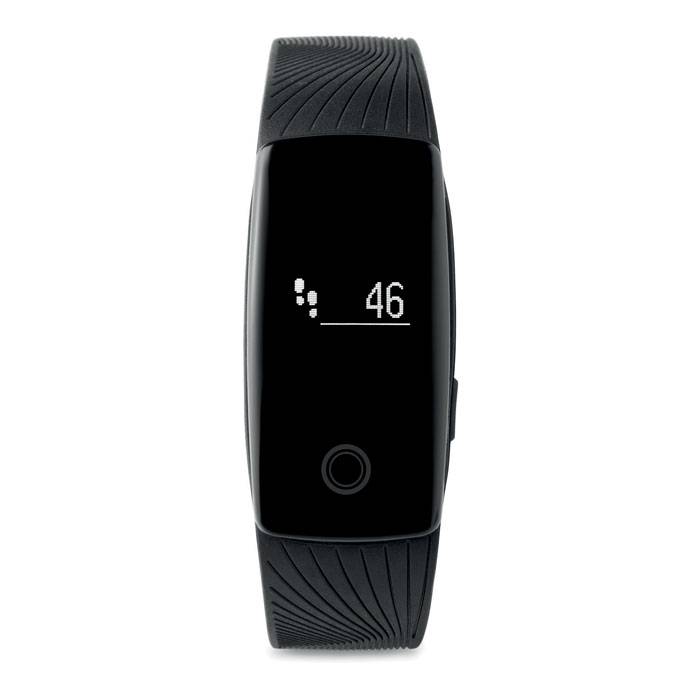 4.0 Bluetooth heart rate fitness tracker in plastic wristband with you can track your steps, calories burned, sleep, alarm mode, income calling notice, taking picture function and anti lost alert. Inclusive Li-Ion battery. Requires a free app (Very fit for heart rate) available in both iOS and Android.
