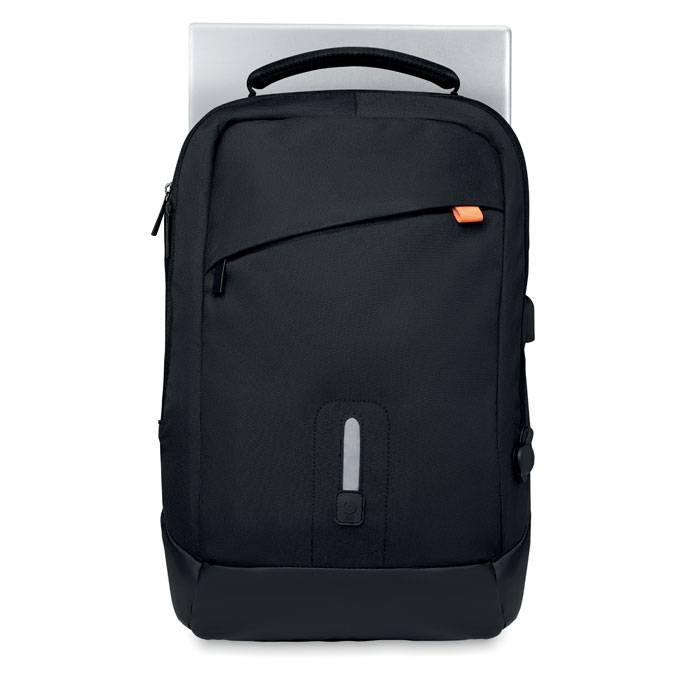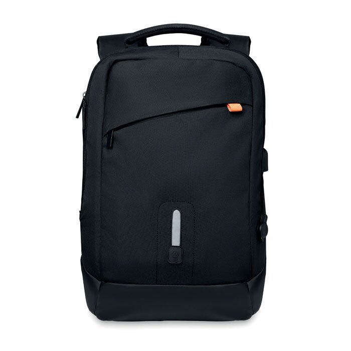 Nylon Power backpack with built-in removable 8000 mAh Power bank. Includes water-resistant AC adapter charging port and battery level indicator.