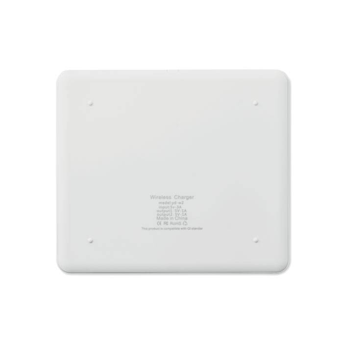 Double wireless charger. Connect device to your computer, lay down smartphone on it and let it charge. Output: DC5V/1.0A. Compatible latest androids, iPhone® 8, 8S and X and newer.