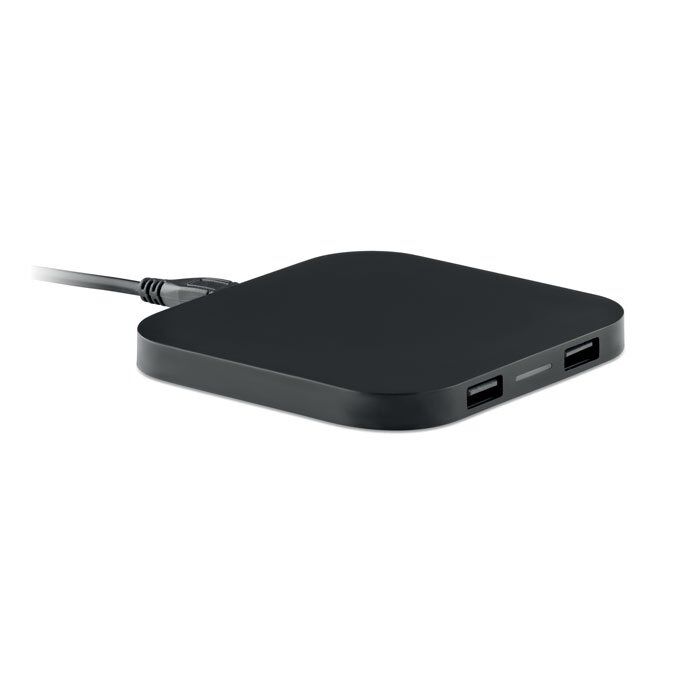 Charging pad with 2 port 2.0 hubs and USB port computer to create wireless charging dock for smartphones. Output DC 5V/ 1.0A. Compatible latest androids, iPhone® 8, 8S and X and newer.