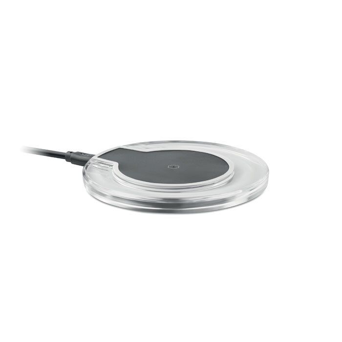 Wireless charger. Connect device to your computer, lay down smartphone on it and let it charge. Blue light when charging. Output: DC5V/1.0A. Compatible latest androids, iPhone® 8, 8S and X and newer.