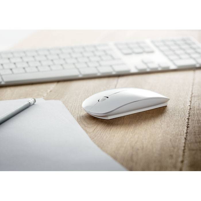 Wireless optical mouse in shiny ABS. 2 AAA batteries not included.