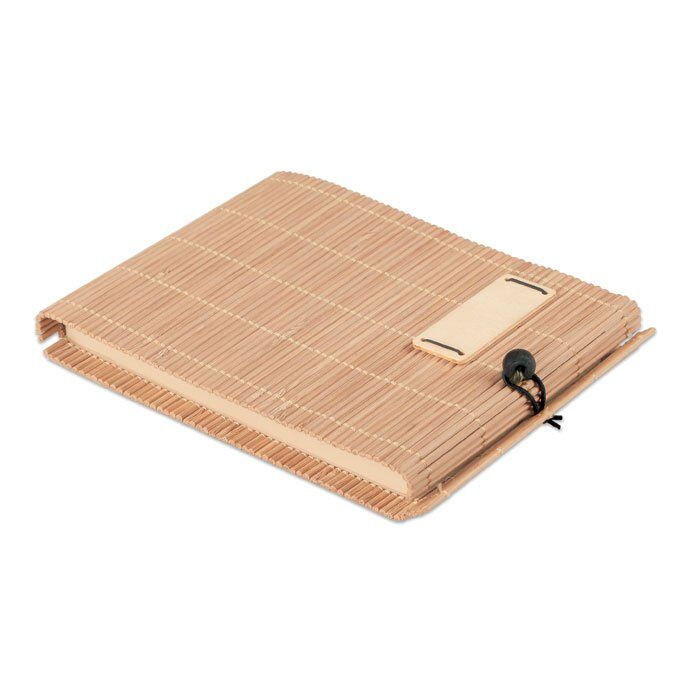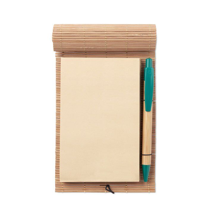 Bamboo 80 sheet notebook with bamboo pen (ABS parts). In Kraft paper gift box