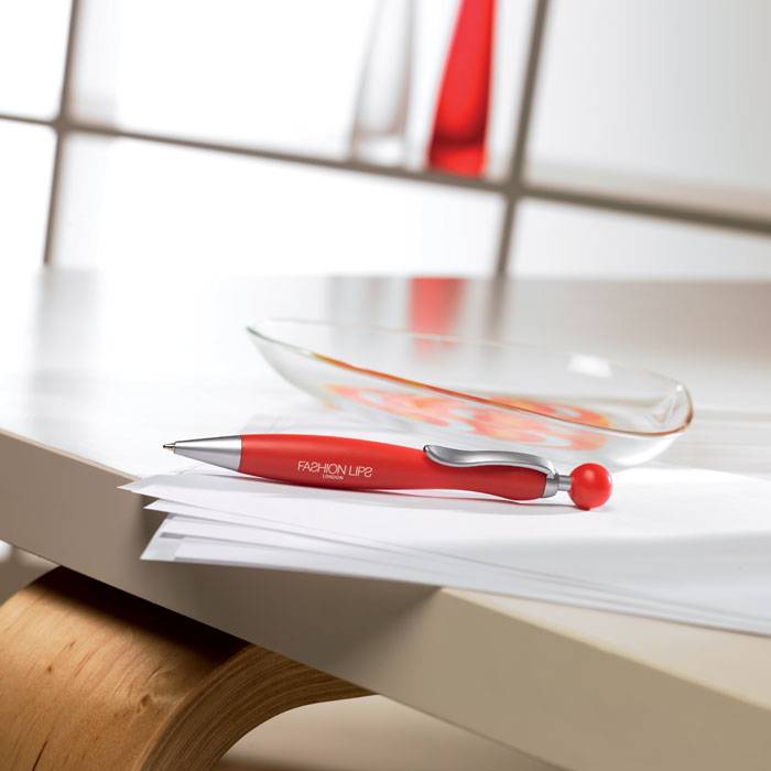 Push button ball pen in ABS with ball shaped top, tip & clip in matt silver. Black ink.