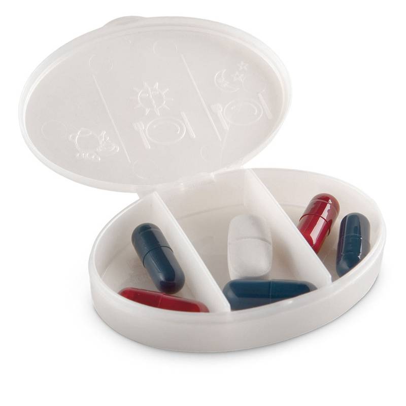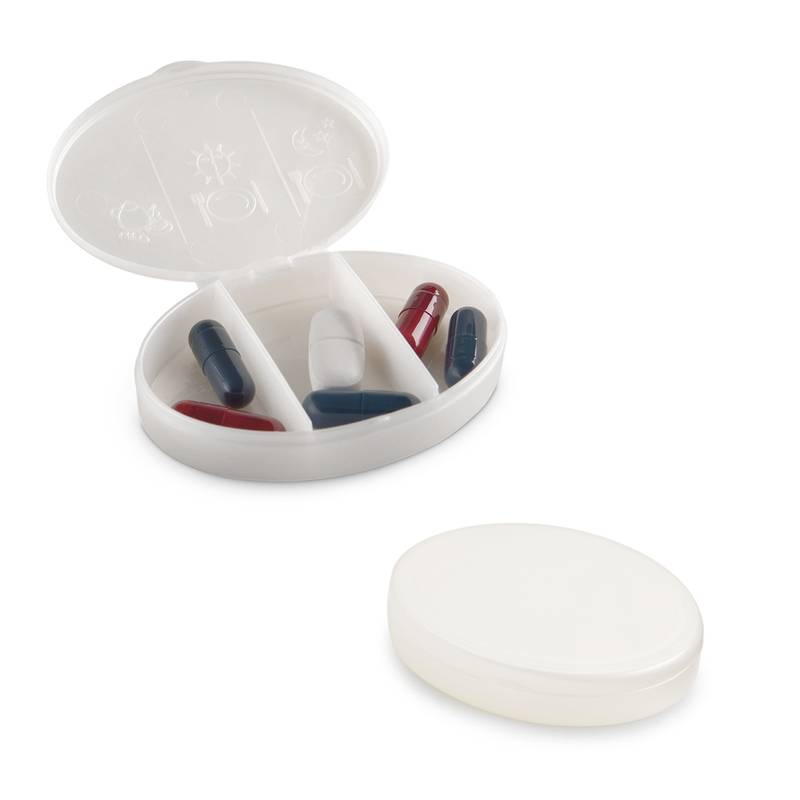 PP pill box with 3 compartments. 70 x 50 x 15 mm
