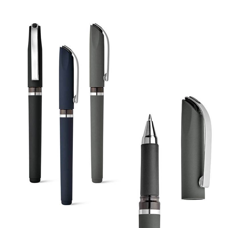 ABS ball pen with metal clip and rubber finish. This ball pen includes gel refill. ø12 x 140 mm