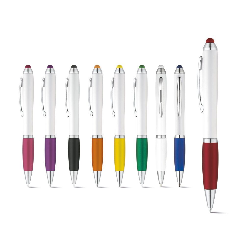 Ball pen with metal clip, non-slip grip and touch tip. ø11 x 135 mm