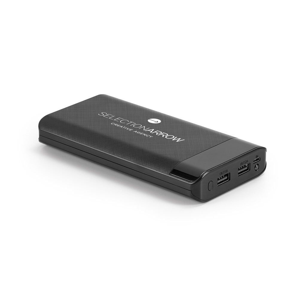 Portable ABS battery with LED, 16,000 mAh capacity lithium battery, over 1,000 cycle life, with 5V/2.1A input, 5V/1-2.1A output, charging indicator, 2 USB ports and 1 port micro USB. This battery has protection against overcharge, short circuit and overheat. Includes USB / micro USB cable to charge the battery and is supplied in a gift box. 156 x 80 x 23 mm | Box: 175 x 100 x 30 mm