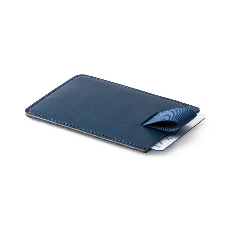 RFID blocking card holder in PU with a polyester strap to easily remove the cards. Capacity to store up to 2 cards. 92 x 65 x 2 mm