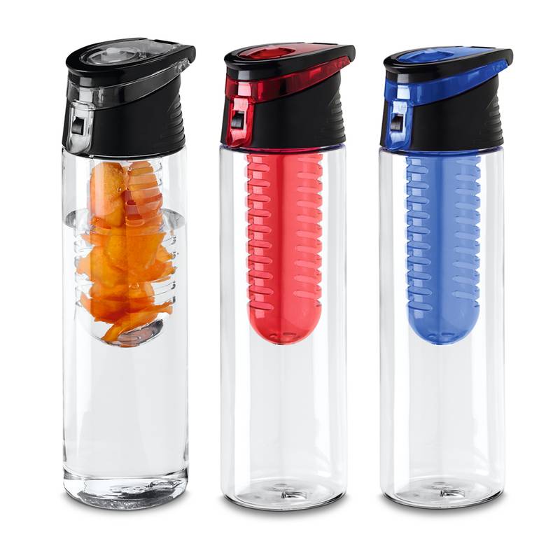 AS and PP sports bottle with fruit infuser inside. It has capacity up to 740 ml. Supplied in box. ø70 x 247 mm
