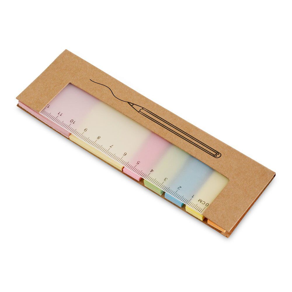 Sticky notes set with 7 sets (25 sheets each set) and 12 cm ruler (printed scale). 159 x 50 x 3 mm