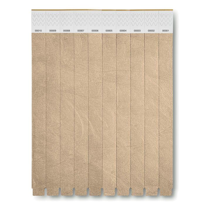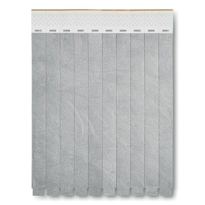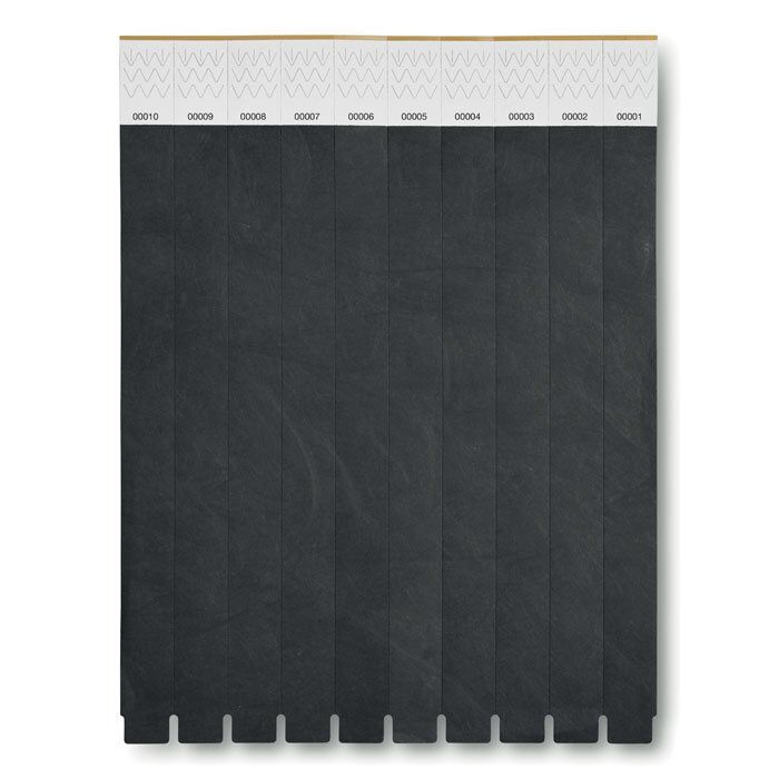 One sheet of 10 event wristbands. DuPont ™ Tyvek® 19mm wide. Including unique numbering on each wristband.
