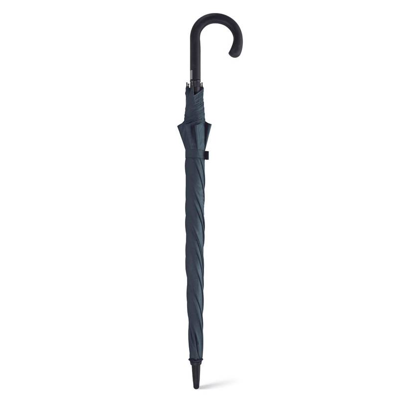 Pongee 190T umbrella with fiberglass shaft and ribs, and rubber coated handle. This umbrella is windproof and has automatic opening. ø1030 mm | 890 mm