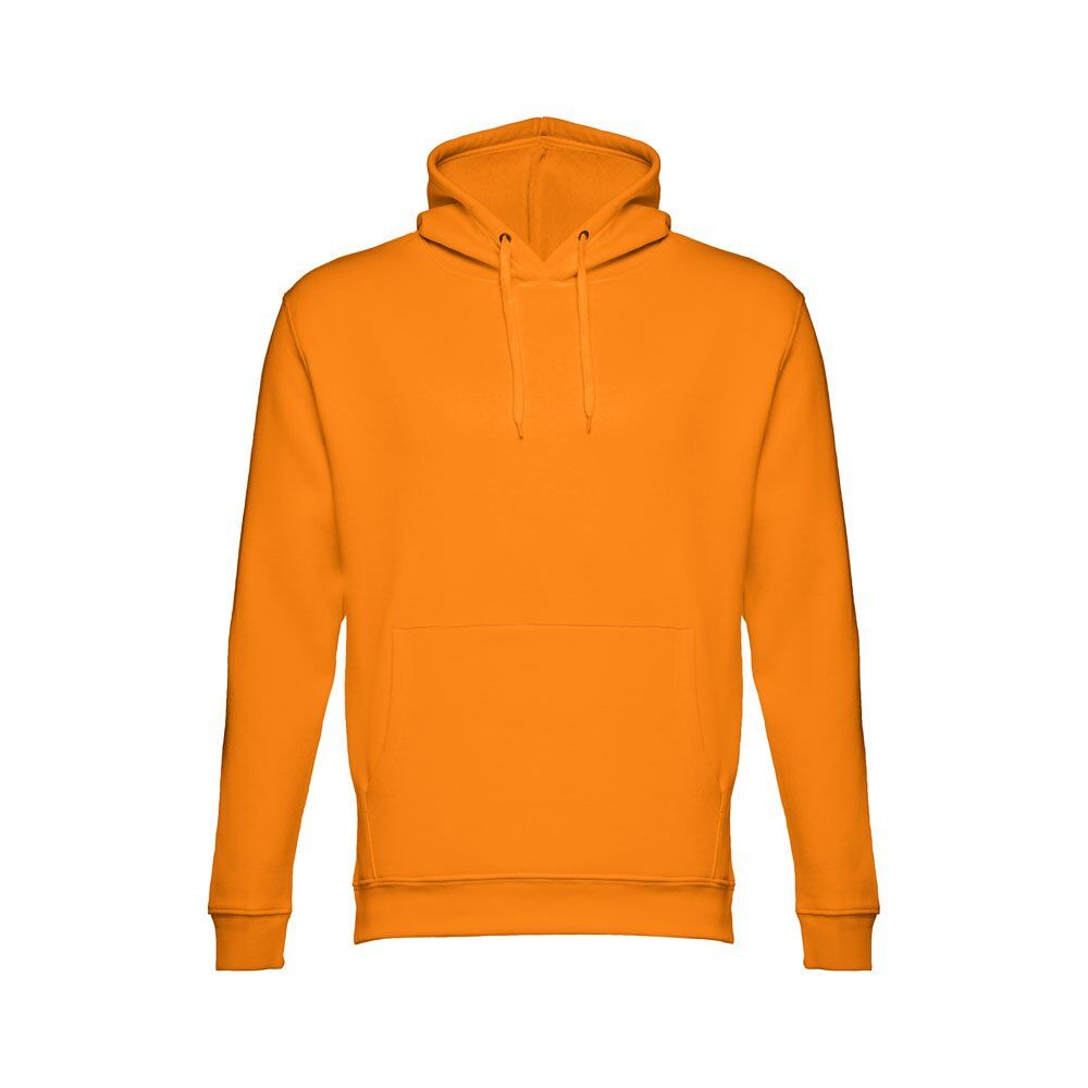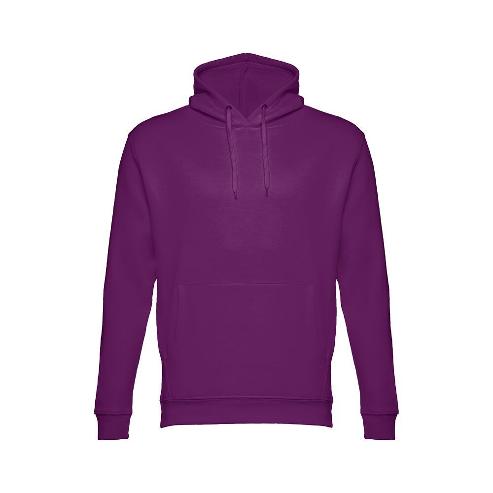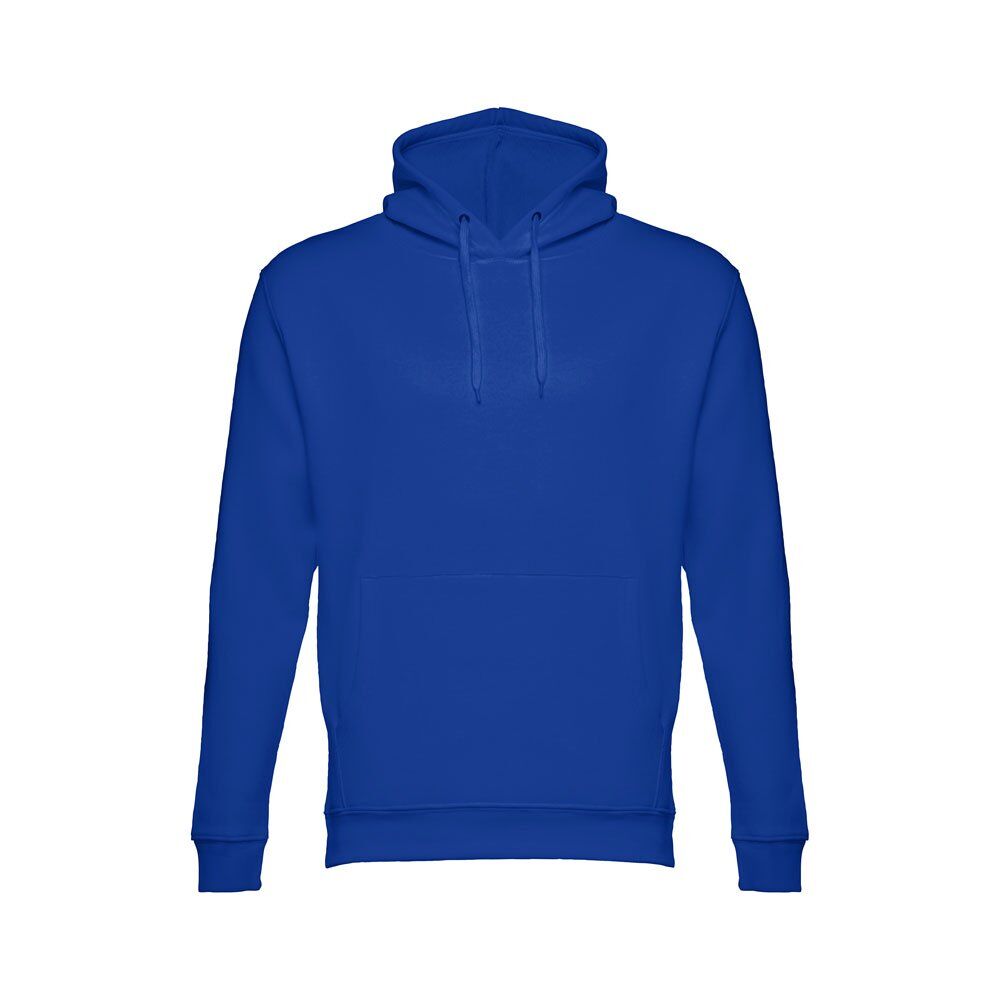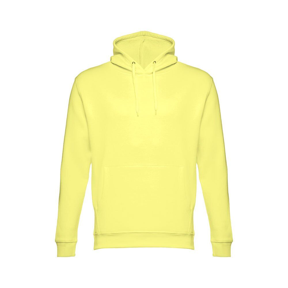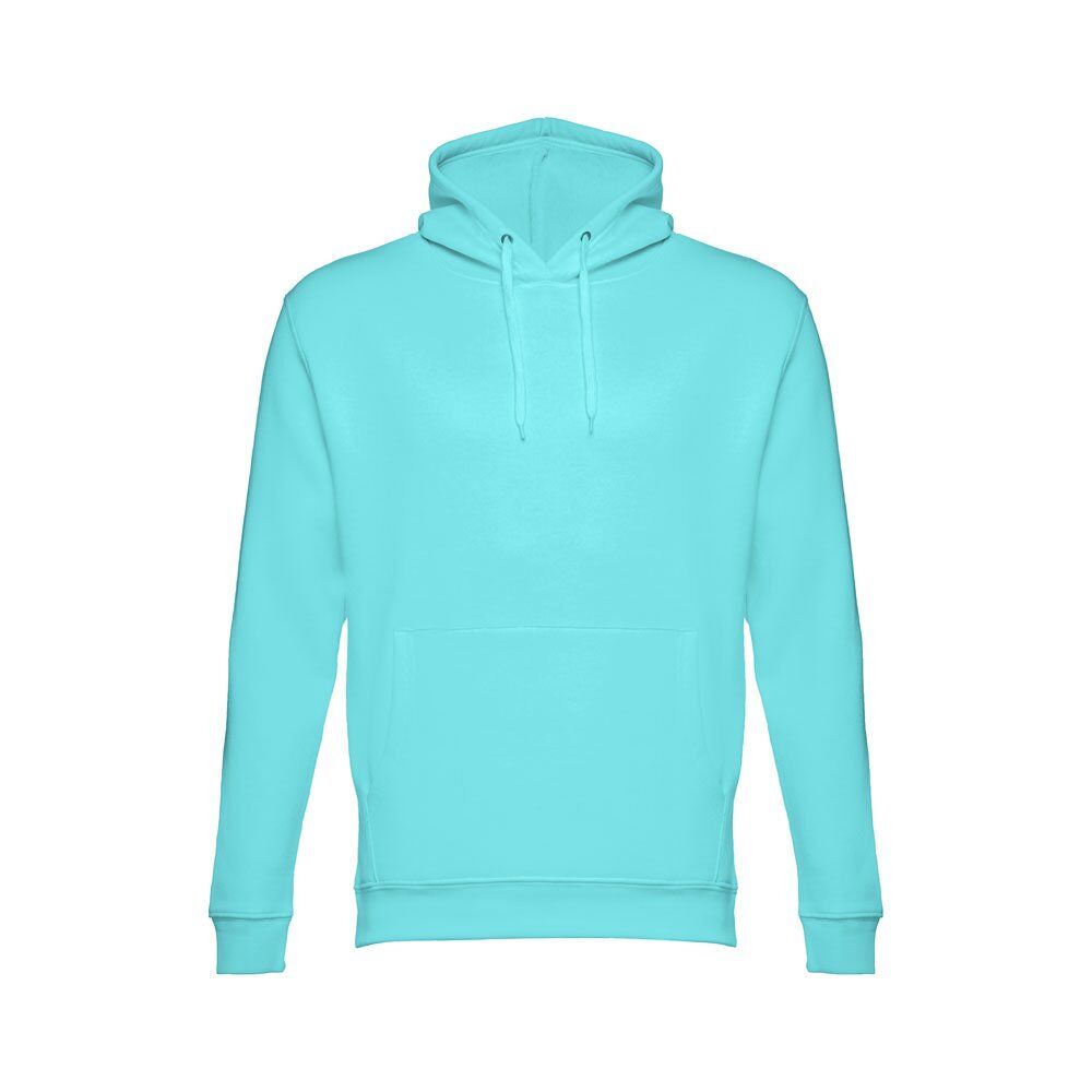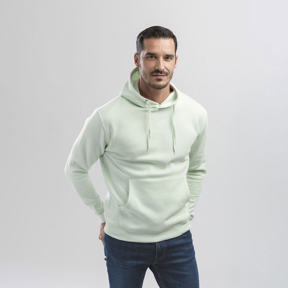 Unisex hooded sweatshirt in 50% cotton and 50% polyester (320 g/m²). Carded interior. Rib 1×1 at the wrists and waistband. Marsupial pocket, hood with eyelets and coloured drawstring cord. Sizes: XS, S, M, L, XL, XXL