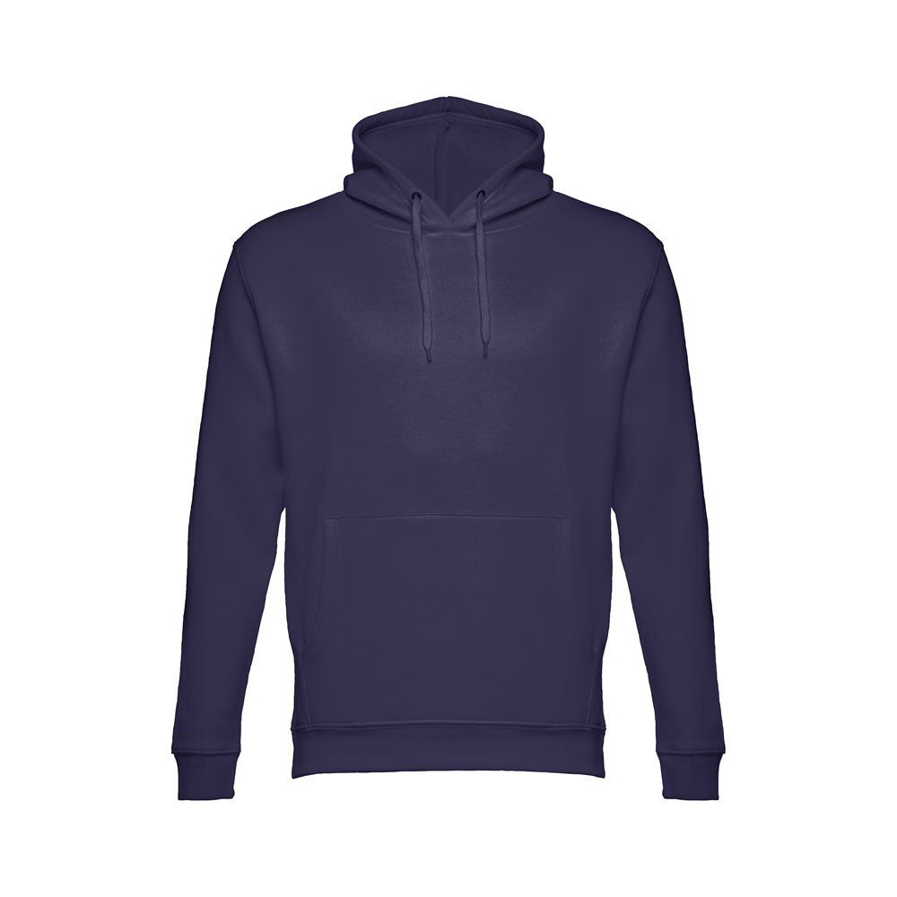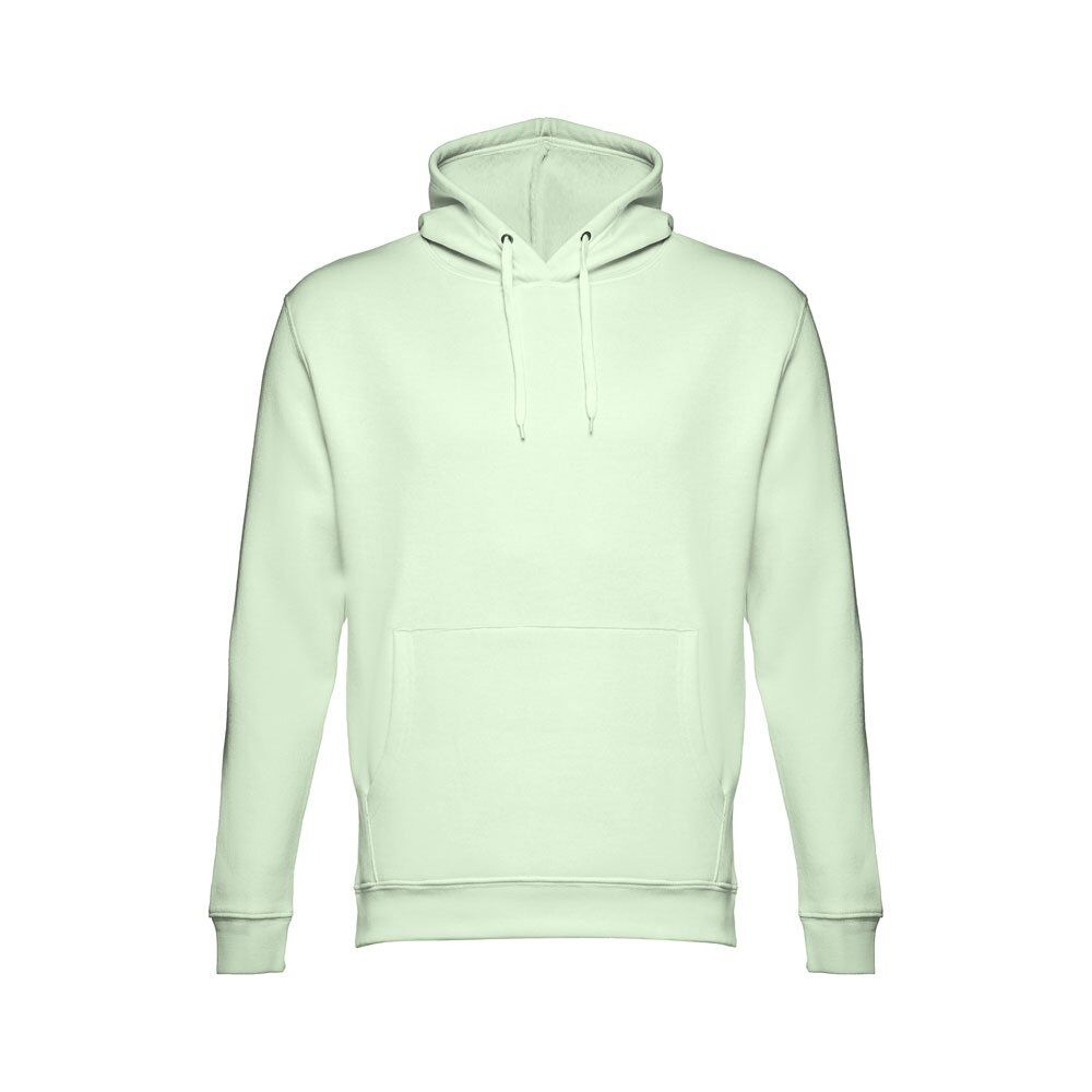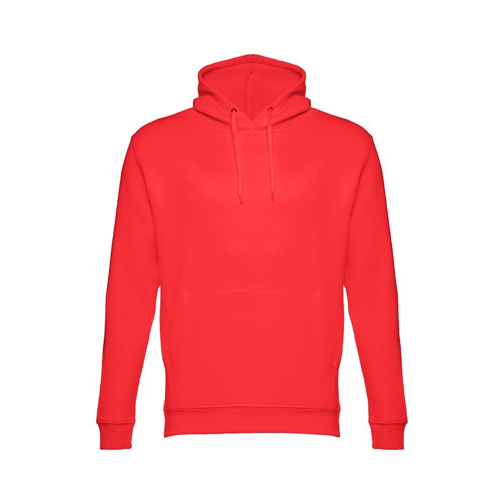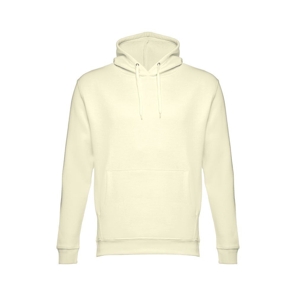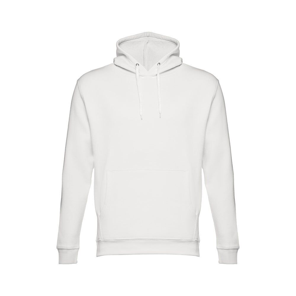 Unisex hooded sweatshirt in 50% cotton and 50% polyester (320 g/m²). Carded interior. Rib 1×1 at the wrists and waistband. Marsupial pocket, hood with eyelets and coloured drawstring cord. Sizes: XS, S, M, L, XL, XXL