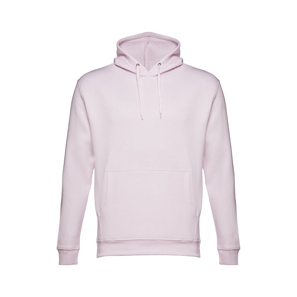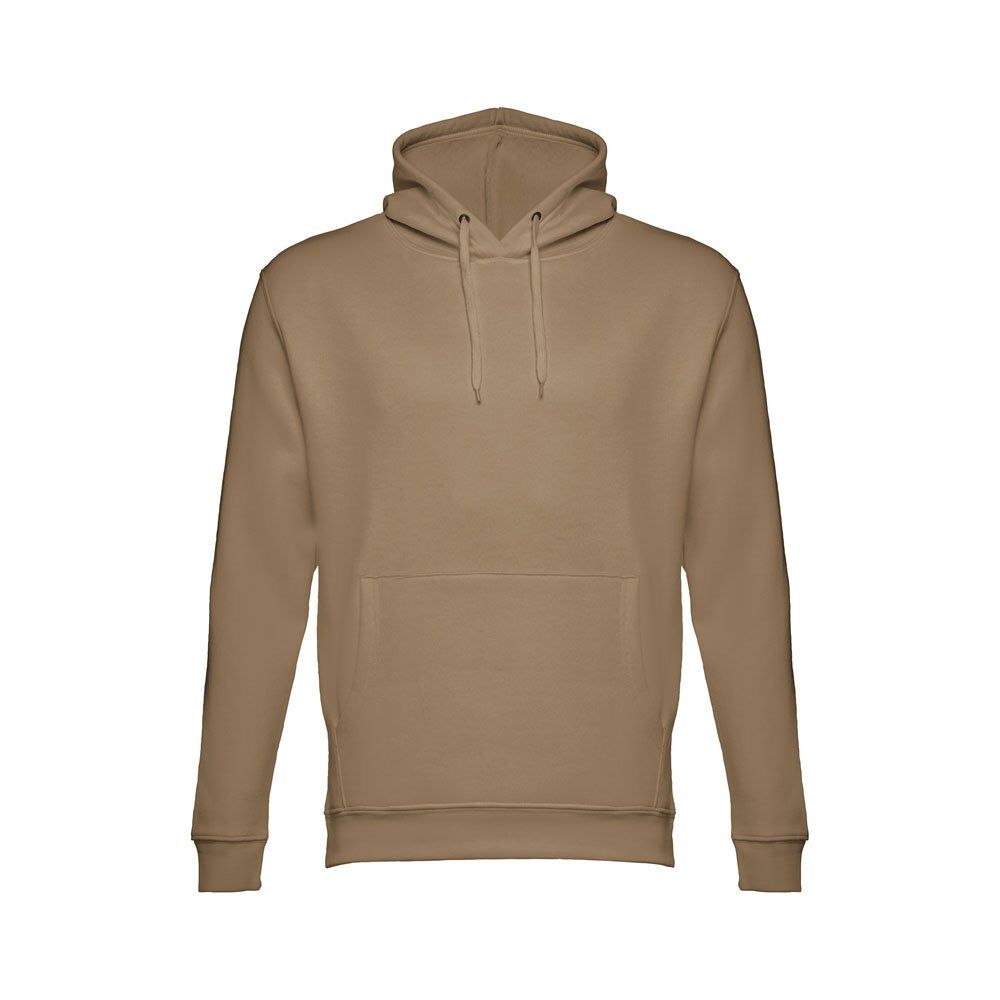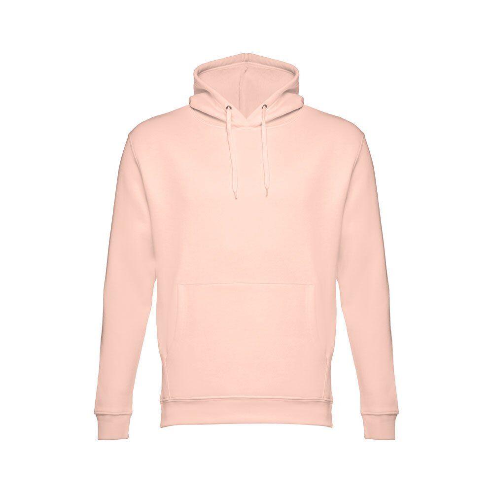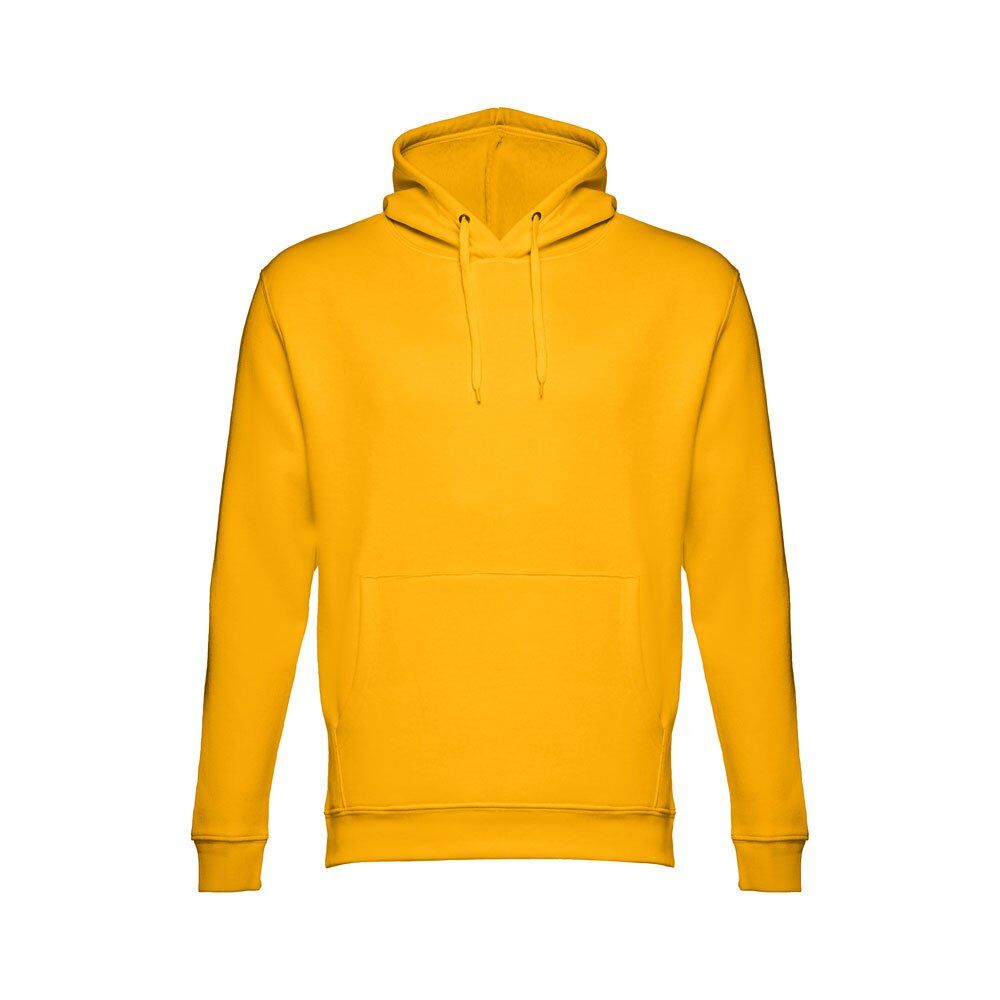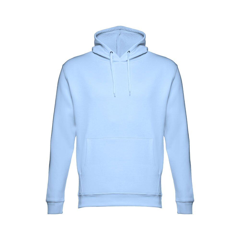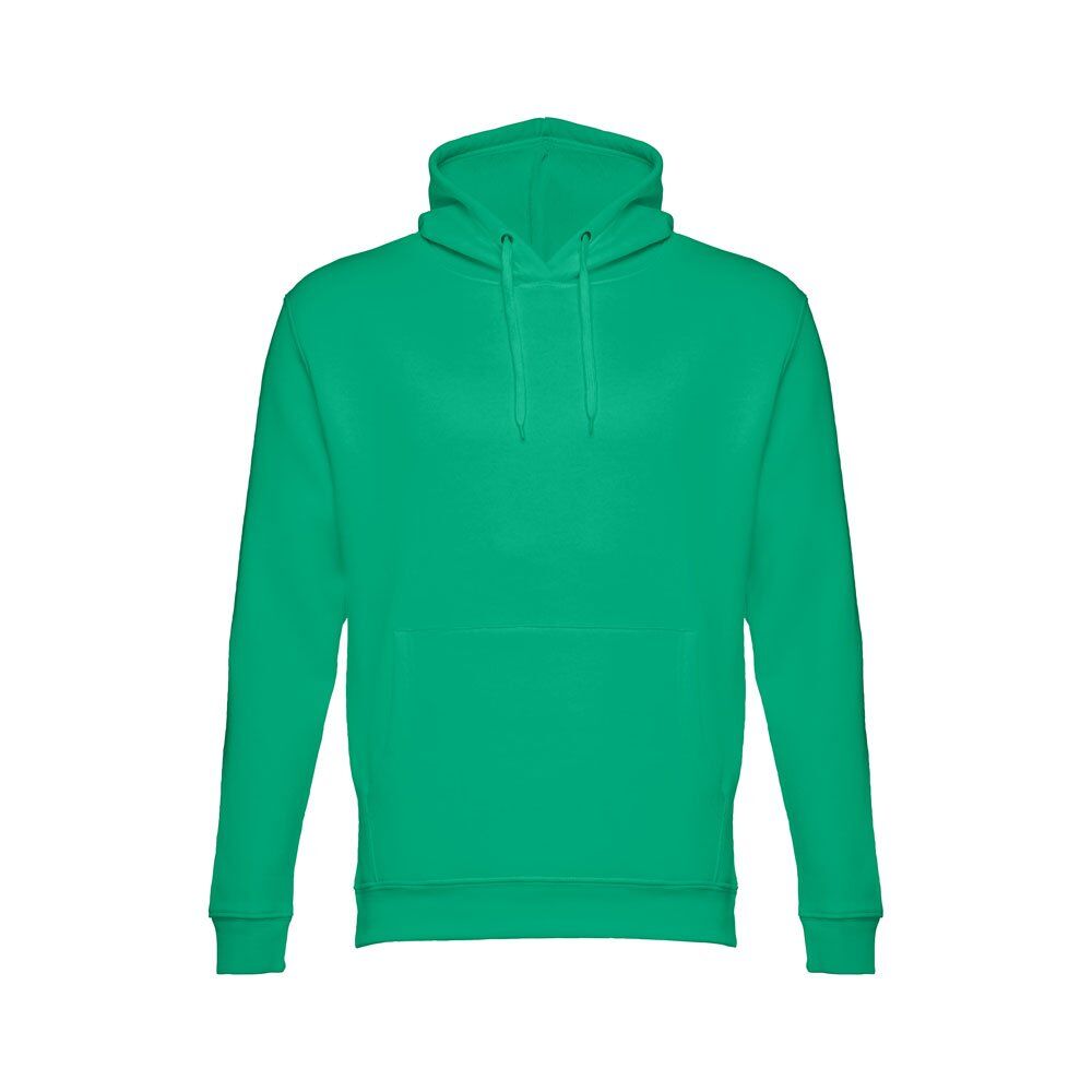 Unisex hooded sweatshirt in 50% cotton and 50% polyester (320 g/m²). Carded interior. Rib 1×1 at the wrists and waistband. Marsupial pocket, hood with eyelets and coloured drawstring cord. Sizes: XS, S, M, L, XL, XXL