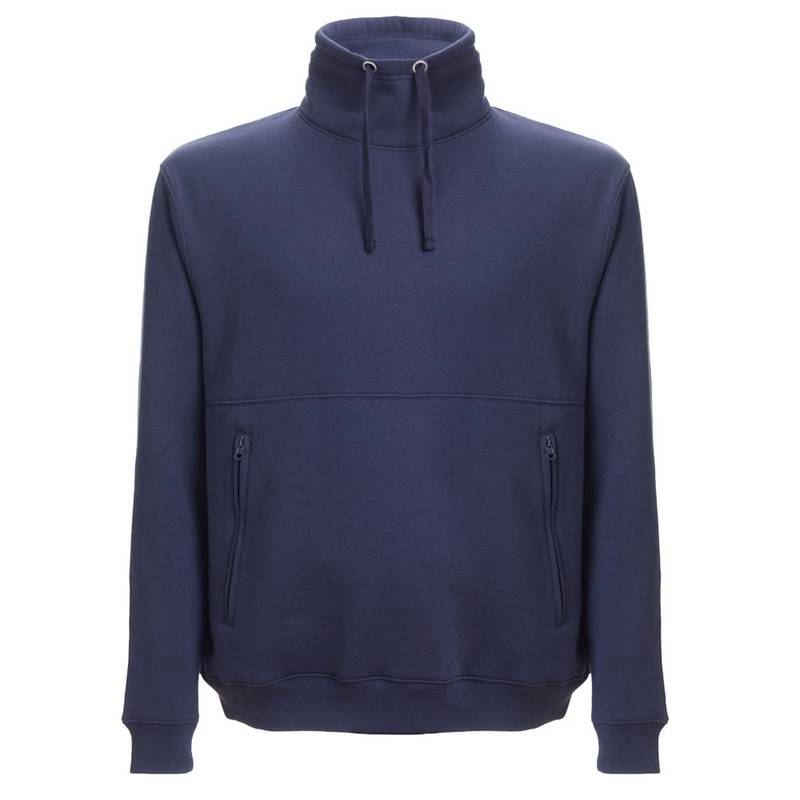 Unisex hooded sweatshirt. 50% cotton and 50% polyester: 320 g/m². With turtleneck and taffeta hood embedded in the collar (with plastic closure). Rib 1×1 at the wrists and waistband. 2 pockets with plastic closure. Sizes: XS, S, M, L, XL, XXL