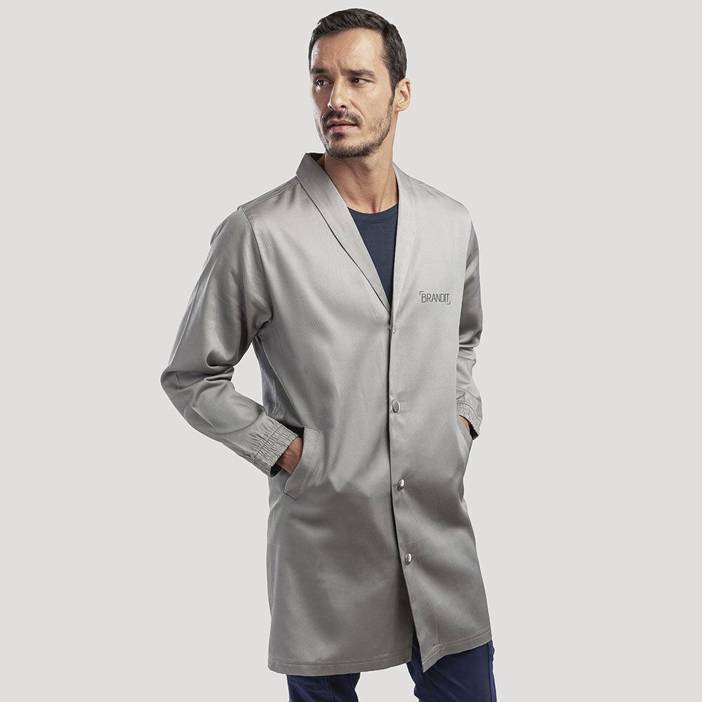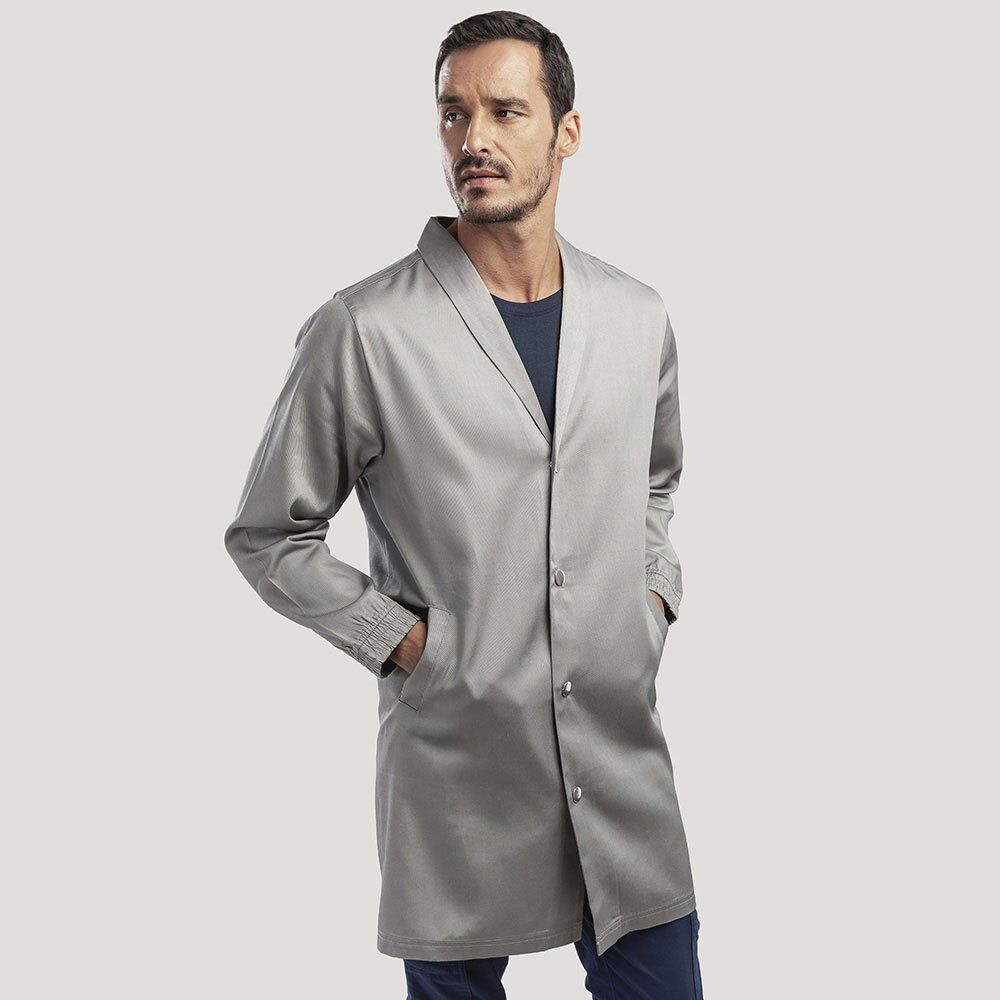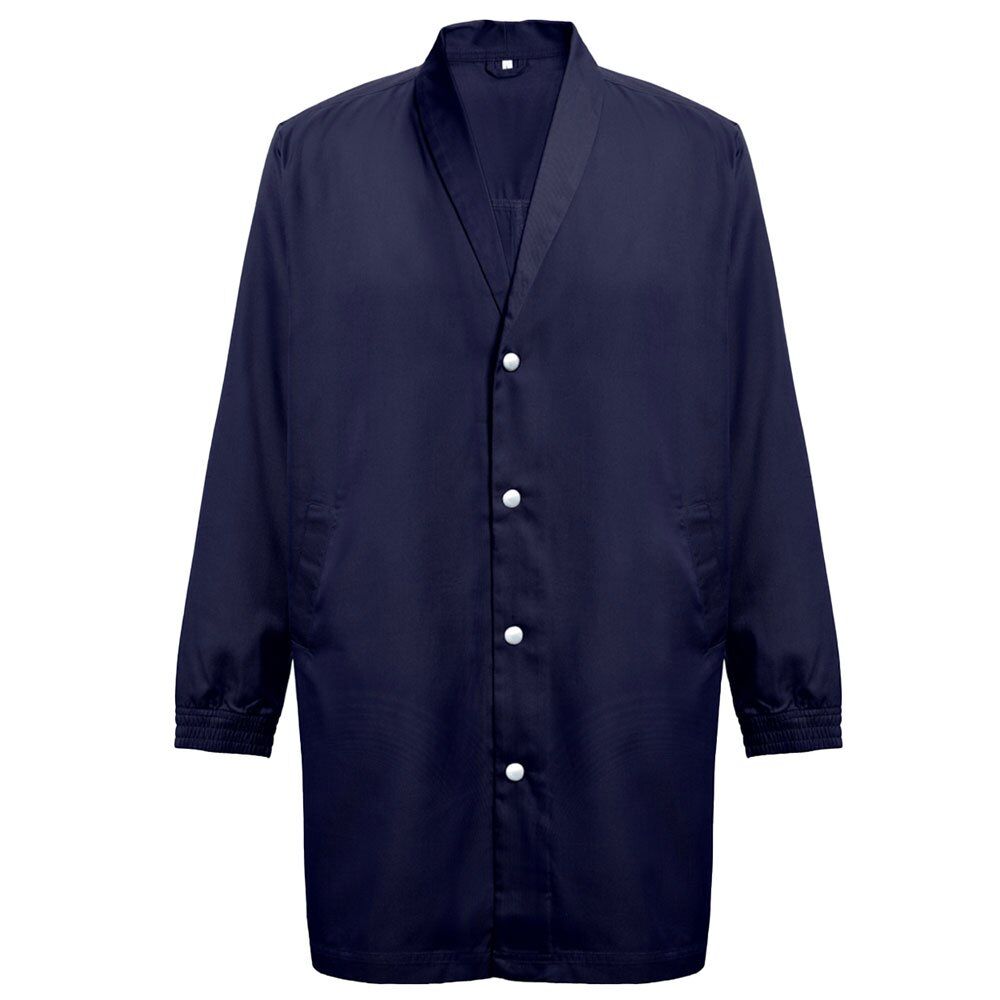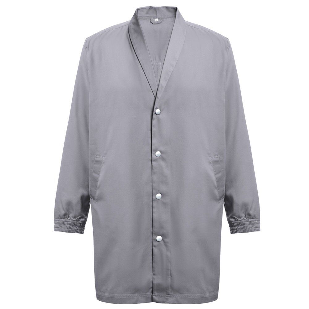 Unisex workwear smock. 20% cotton and 80% polyester: 190 g/m². Stylized collar. Sleek and stylish cut with 2 side pockets. Elastic cuffs. Closes with snap buttons. Back opening for better freedom of movement. Sizes: S, M, L, XL, XXL, 3XL