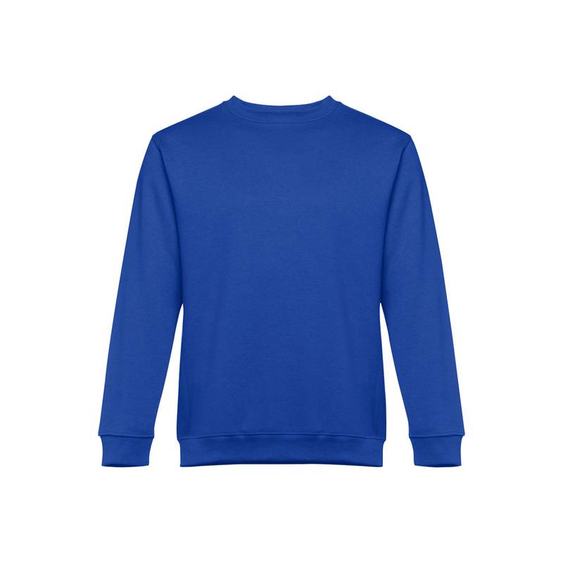 Unisex sweatshirt in 50% cotton and 50% polyester (300 g/m²). Carded interior. 1×1 rib and double stitching on collar, cuffs and waistband. Reinforcement tape on the collar. Sizes: S, M, L, XL, XXL