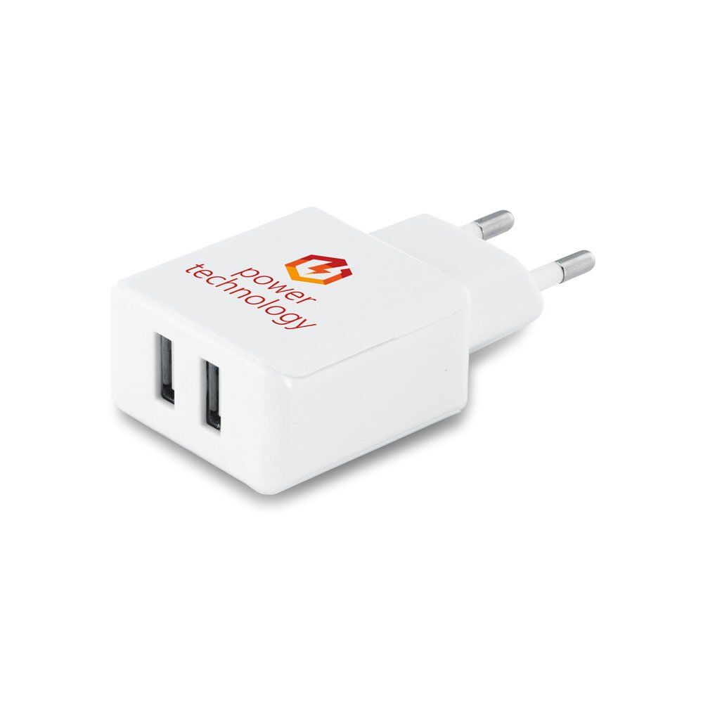 ABS USB adapter with 2 5V/1-2.1A output. 62 x 42 x 23 mm