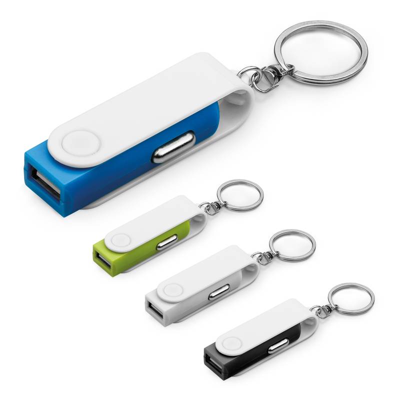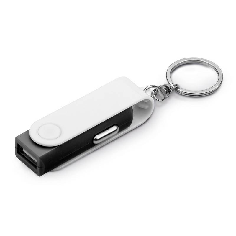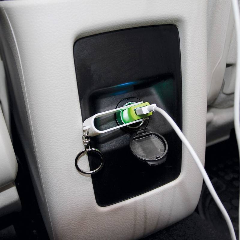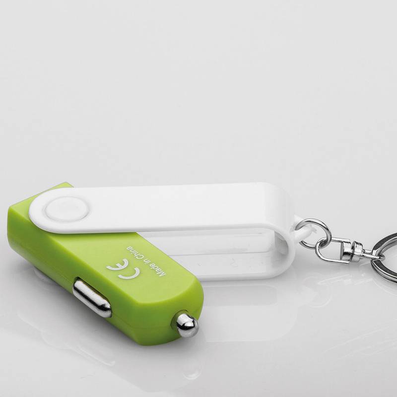 keyring with USB car adapter, with 5V/1A output and 12-24V input. Suitable for charging smartphones. 24 x 16 x 67 mm