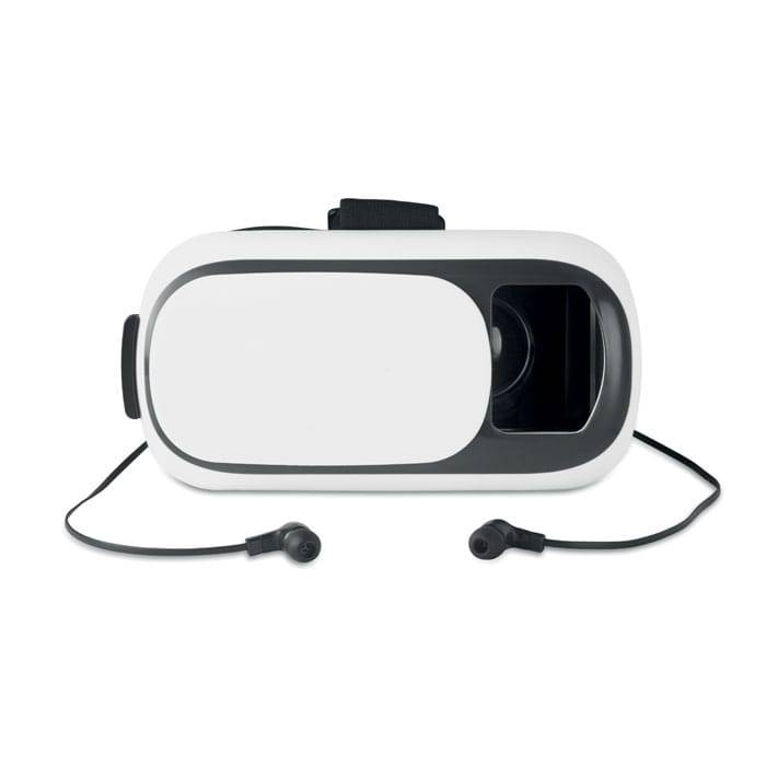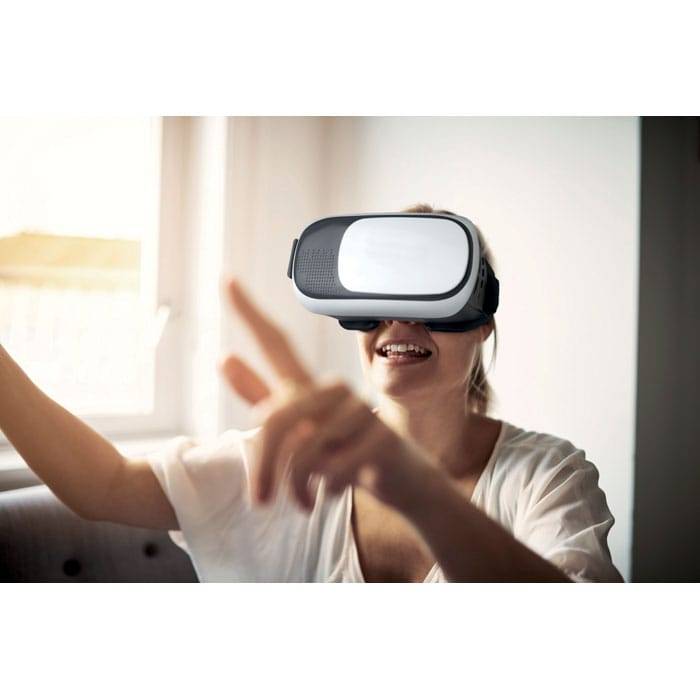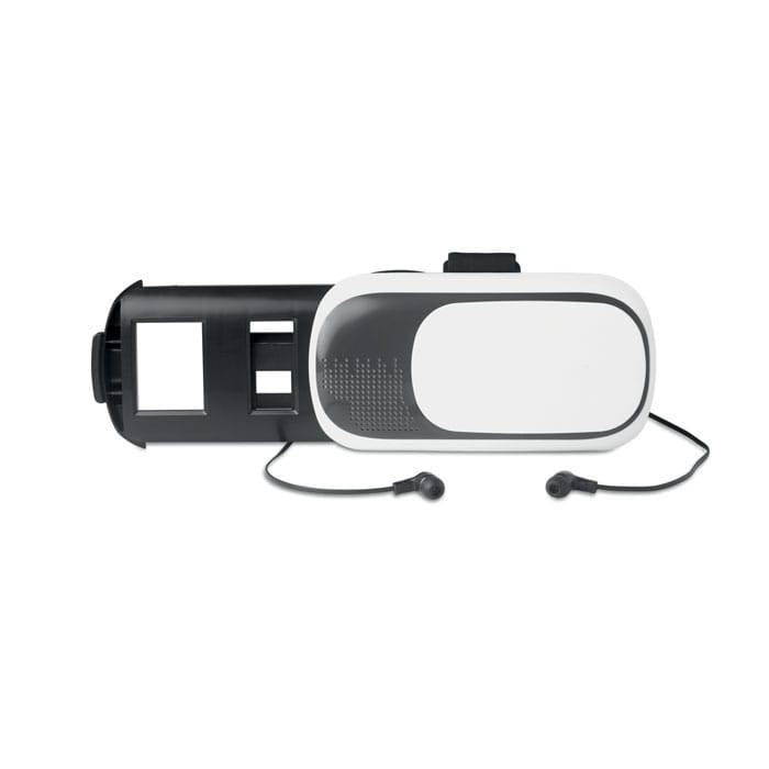 Virtual reality glasses with bluetooth earphones included. It works in conjunction with VR apps. The device supports any sized smartphone between 4.0-6.5 inches. Rechargeable Li-pol 180mAh.