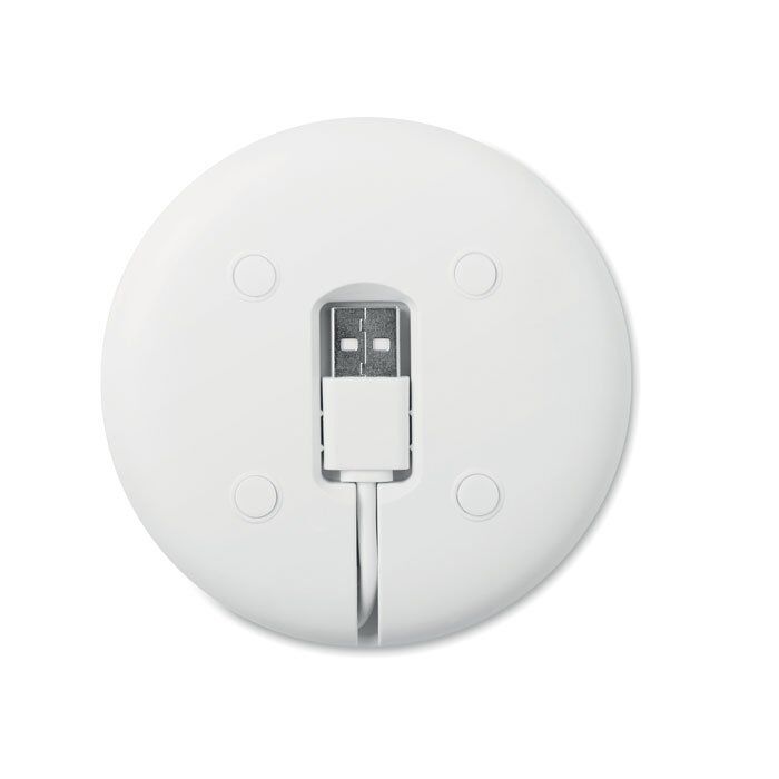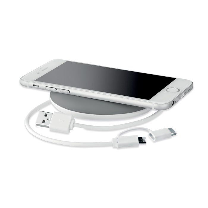 Wireless charger with integrated retractable cable. Output: DC5V/0.8A. Compatible latest androids, iPhone® 8, 8S and X and newer