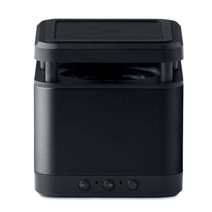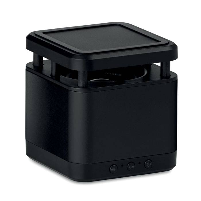 Wireless charger with 4.2 Bluetooth 3W speaker. Rechargeable Li-Ion 400 mAh battery included. Output wireless: DC5V/1.0A. Output speaker: 3W, 4 Ohm and 5V. Playing time aprox. 3h. Wireless charging compatible latest Androids, iPhone® 8, 8S and X and newer.